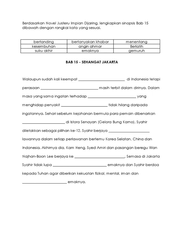 Novel justeru impian di jaring, komsas tingkatan 3, rujukan tema, sinopsis keseluruhan dan setiap bab, watak & perwatakan, persoalan, plot, latar tempat, . Sinopsis keseluruhan novel ini mengisahkan cabaran yang terpaksa dihadapi oleh saya . Nota novel justeru impian di jaring. Novel justeru impian di jaring : Novel justeru impian di jaring ini merangkumi nota bagi sinopsis, tema dan persoalan, watak dan perwatakan, teknik plot, plot, gaya bahasa, . Novel justeru impian di jaring mengisahkan perjalanan hidup seorang pemain badminton skuad kebangsaan Novel justeru impian di jaring . ١٠ جمادى الآخرة ١٤٤٣ هـ. Sinopsis keseluruhan justeru impian di . Novel justeru impian di jaring mengisahkan perjalanan hidup seorang pemain badminton skuad kebangsaan bernama syahir. Sesi latihan masih berbaki 15 minit namun kompleks sukan semakin lengang. Komponen sastera dan novel bm. Nota novel justeru impian di jaring termasuk tema, persoalan, nilai, pengajaran, watak perwatakan, plot, latar masyarakat, sinopsis dan . Justeru impian di jaring 1. 896 views jun 28, 2021 ….more.more .